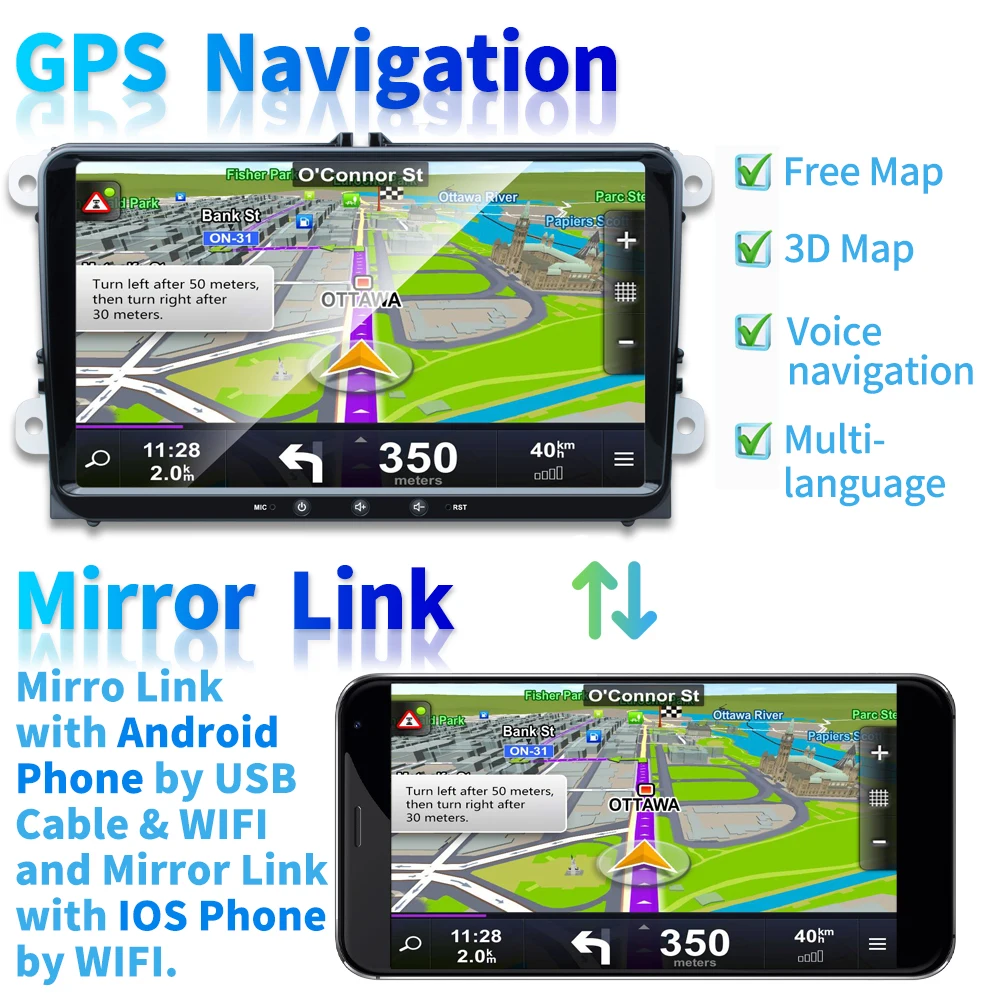 Podofo Android 8.1 2Din Car MP5 Multimedia Video Player GPS Car Radio Auto Radio Stereo 8''Audio For Seat/Skoda/Passat/Golf/Polo : Click Here