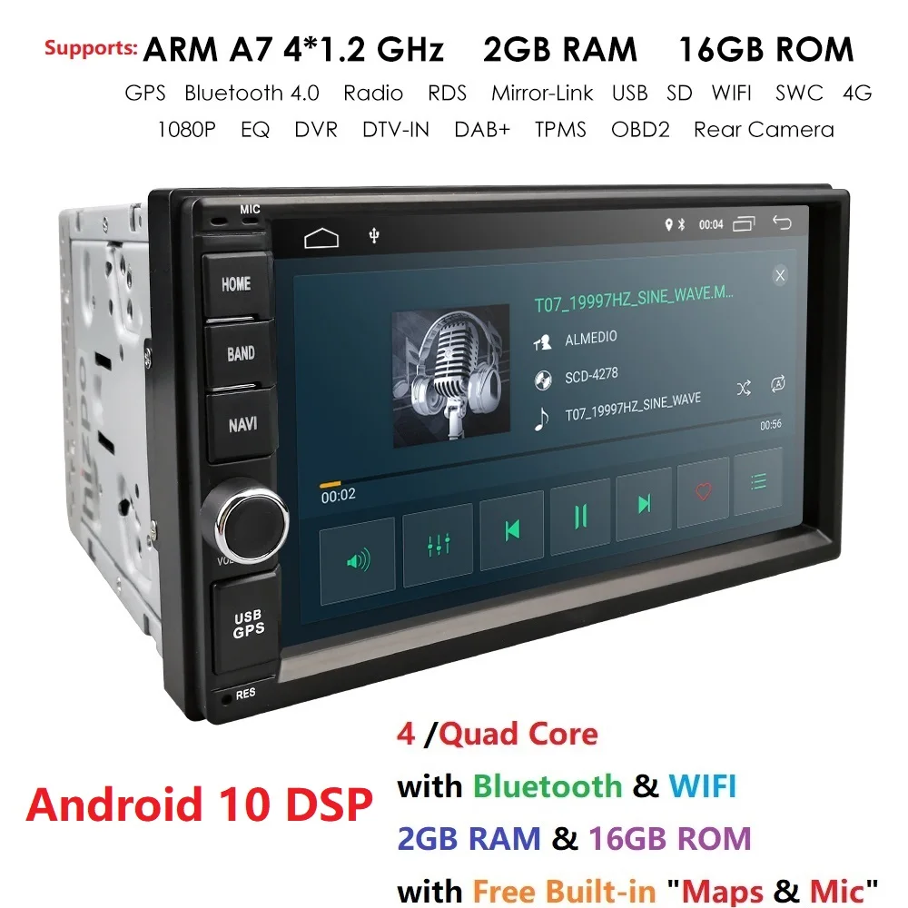 2 Din 7'' Quad core Universal Android 10 2GB RAM Car Radio Stereo GPS Navigation WiFi 1024*600 Touch Screen 2din Car multimedia : Click Here